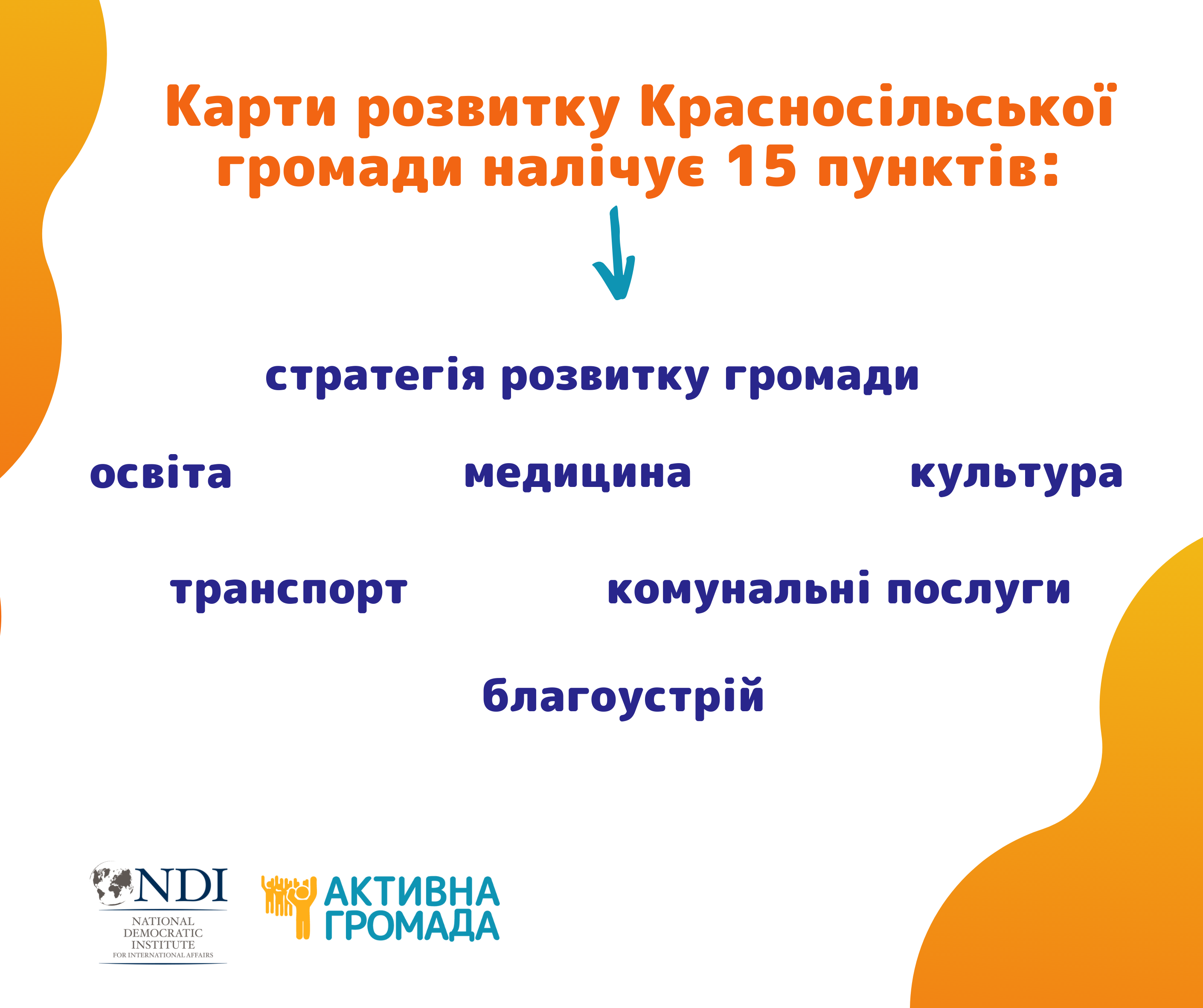 Впродовж травня – липня 2020 року спільно з громадою писали Карту Розвитку Громади, яка включає 15 пунктів: