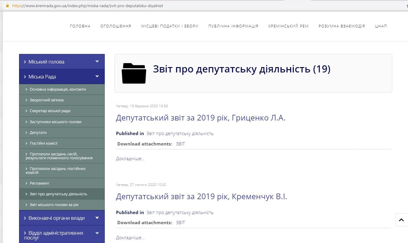 У Кремінській міській ОТГ оприлюднені звіти деяких депутатів попереднього скликання:
