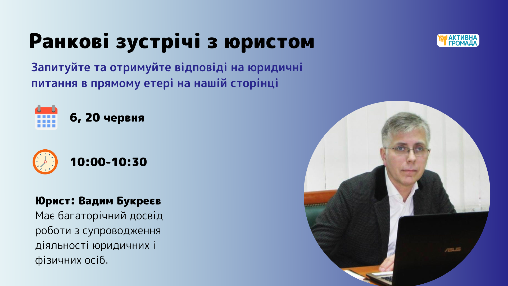 Місце: прямий ефір на сторінці ВІ “Активна Громада” у Facebook.