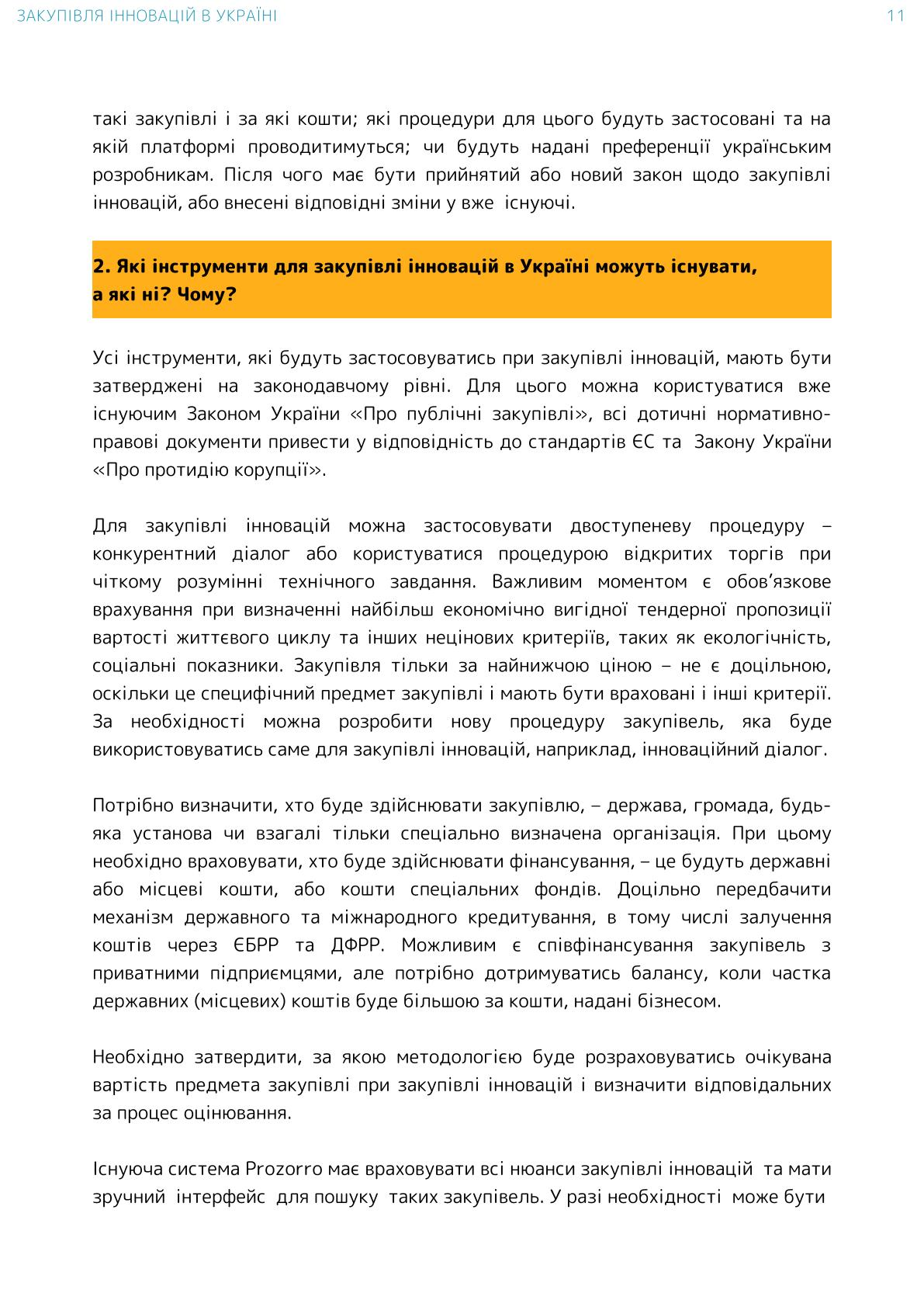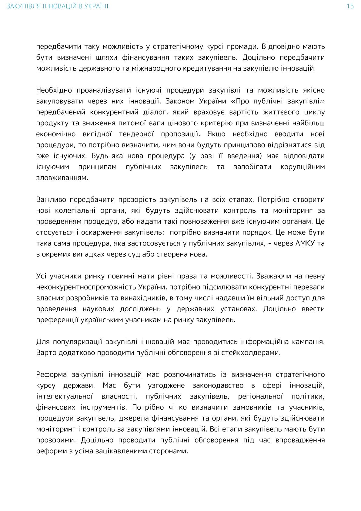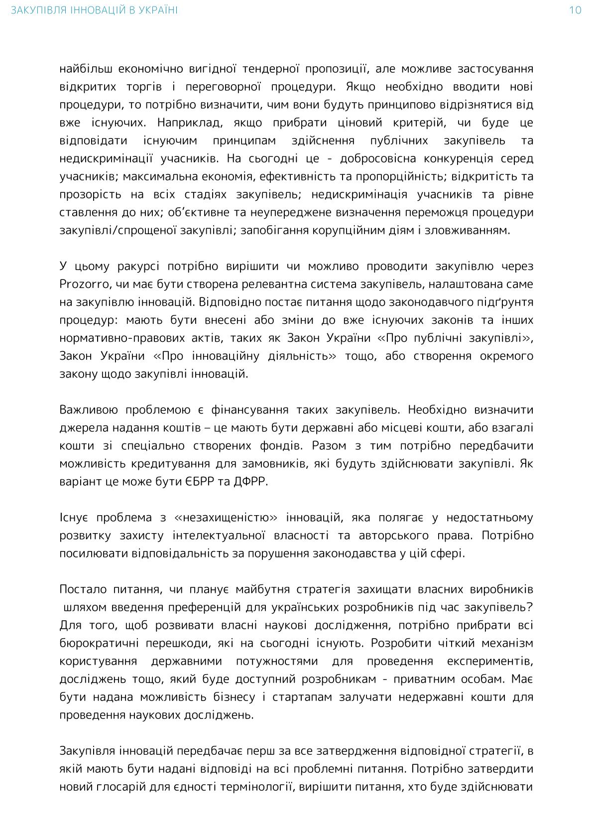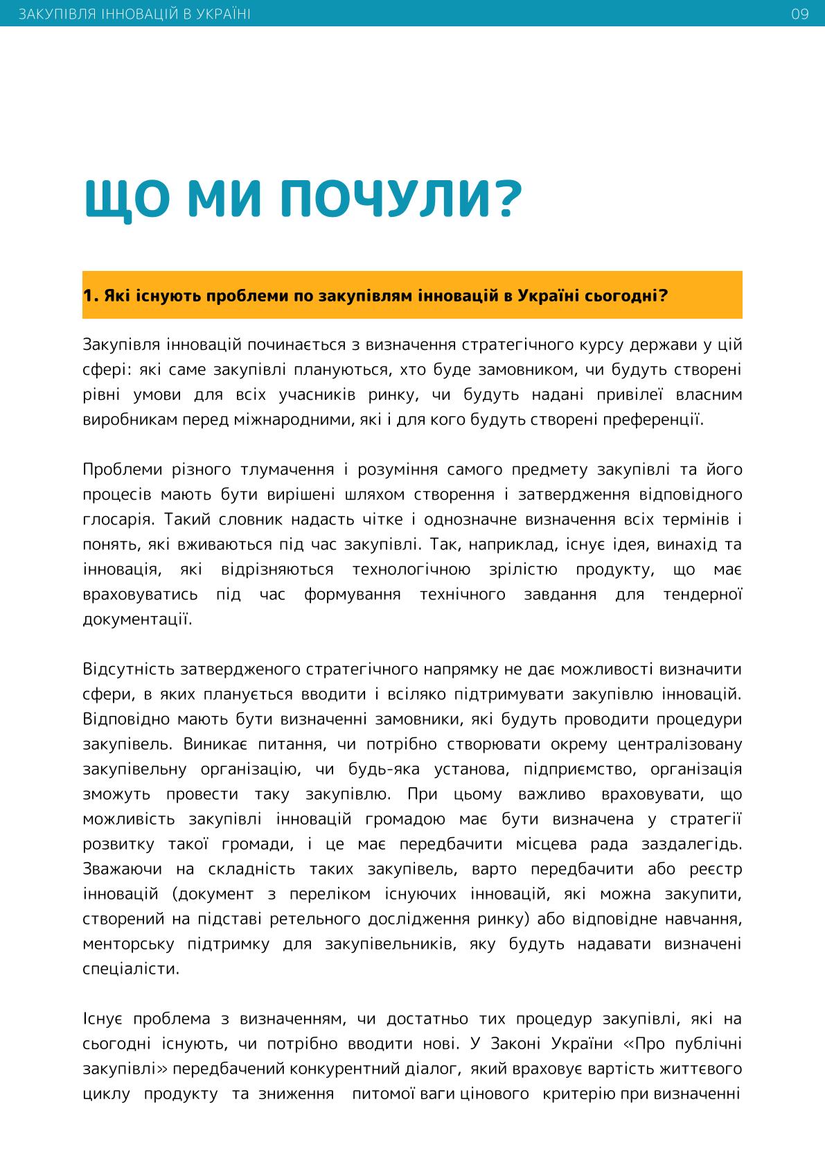 В Україні ж на сьогодні майже відсутня практика державної закупівлі інновацій. Державні установи не довіряють інноваційним рішенням як таким, не дбають про рівень безпеки цих розробок, оскільки часто глибоко не досліджують їх користь.