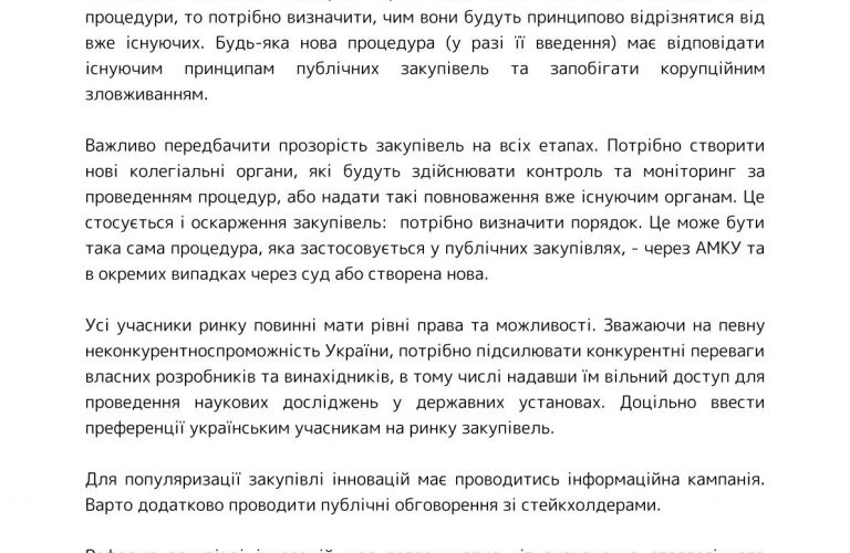 Тема державних закупівель інновацій є надзвичайно важливою і потребує законодавчого врегулювання, оскільки економічний прогрес важко уявити без розвитку та впровадження наукових розробок, інноваційних продуктів.