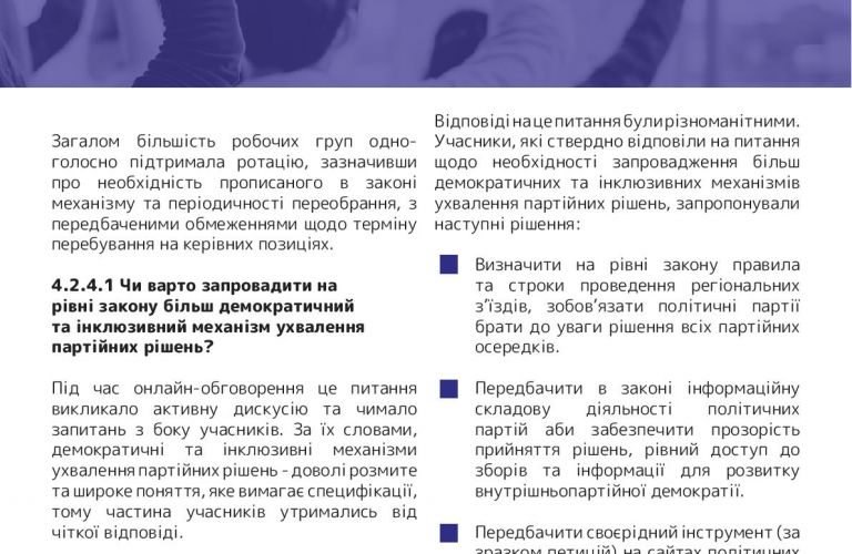 чи варто запровадити на рівні закону більш демократичний та інклюзивний механізм ухвалення партійних рішень?