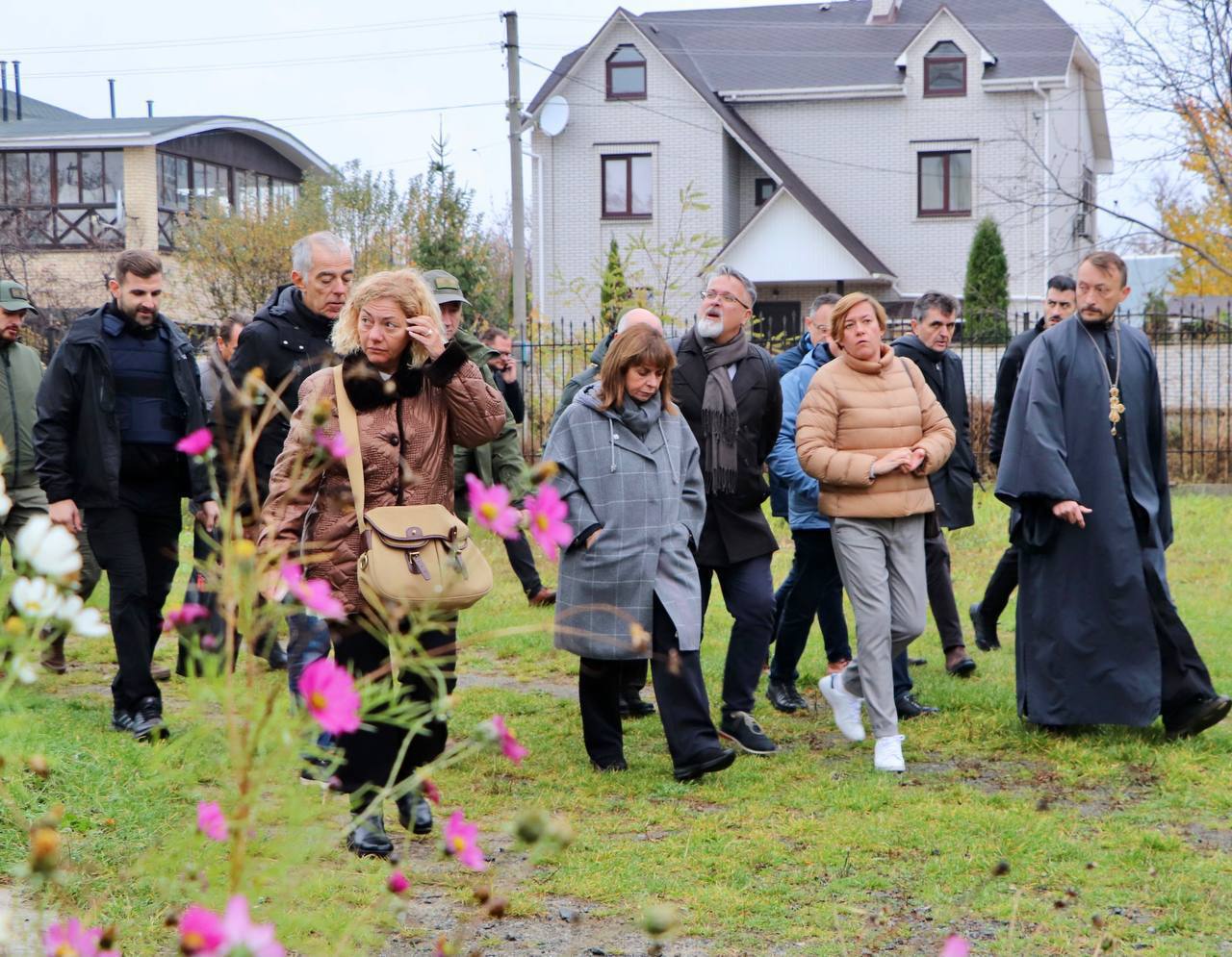 Президентка Греції Катерина Сакелларопулу відвідала Бучу у рамках свого візиту до України. Вона побувала у Храмі Андрія Первозванного, де оглянула фотовиставку «Одна війна - різні історії» та місце масового поховання безневинно вбитих бучанців.