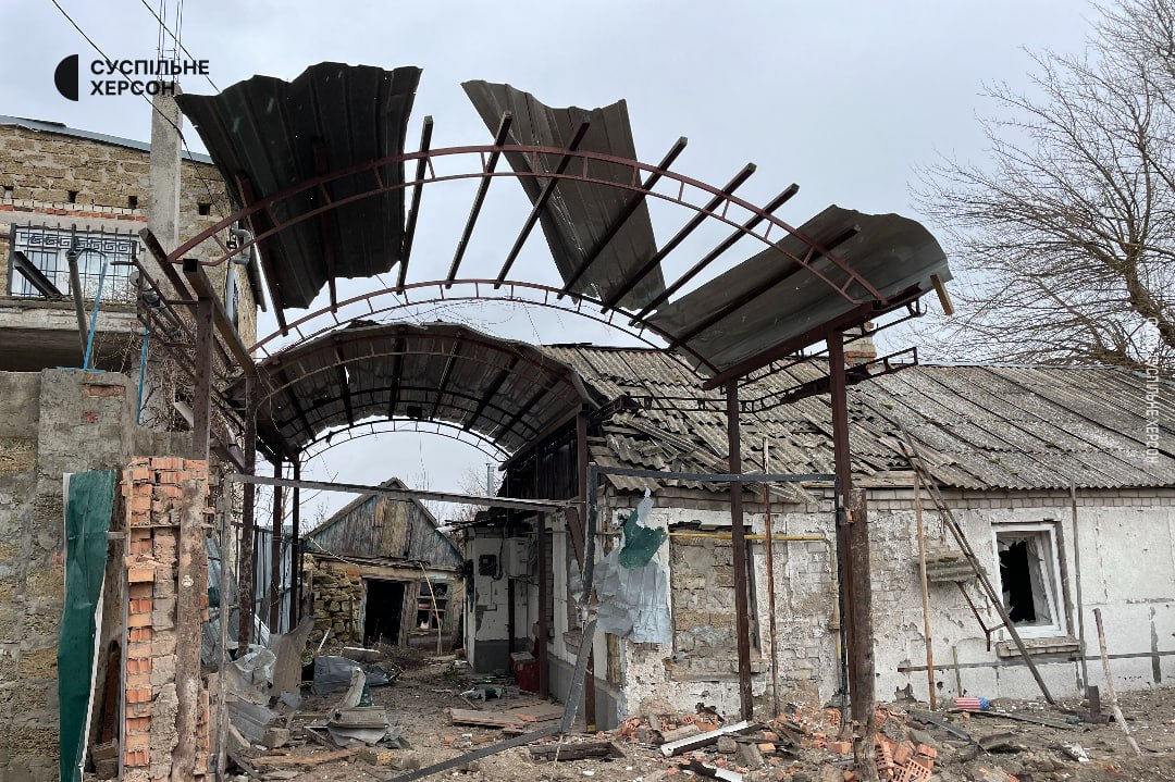 Вночі російська армія з артилерії обстріляла село Новотягинка Дарʼївської громади Херсонської області. Пошкоджені будинки, з-під завалів рятувальники дістали тіло загиблого чоловіка.