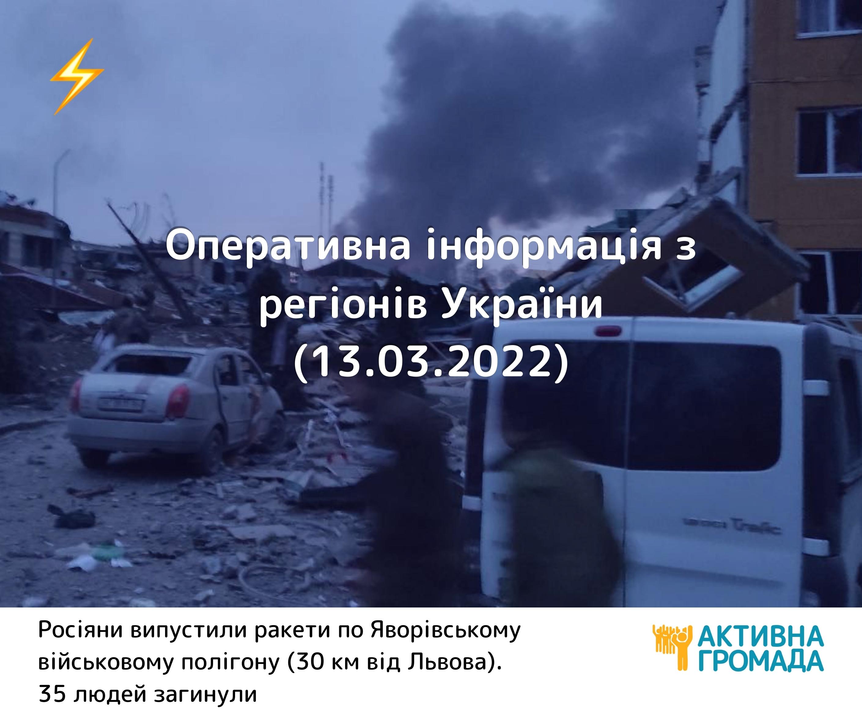 Оперативна інформація з регіонів мережі Активної Громади станом на 13.03.2022
