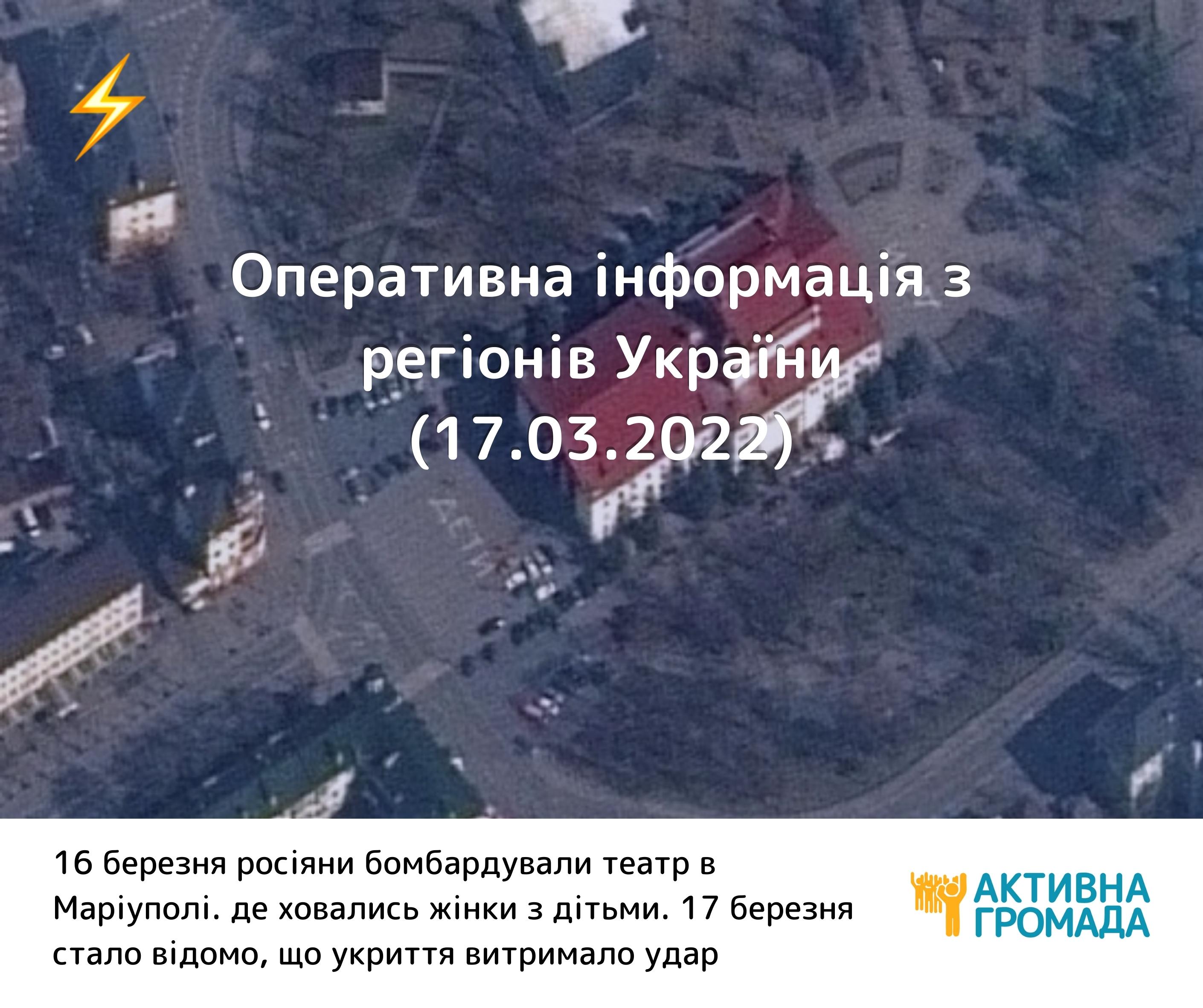 16 березня російські окупанти вдарили по Драматичному театру, в укритті якого ховались цивільні жителі. З неба російський пілот бачив написи “ДЕТИ” перед і за будівлею. З-під завалів почали звільняти заблокованих у бомбосховищі людей. Укриття витримало бомбардування.