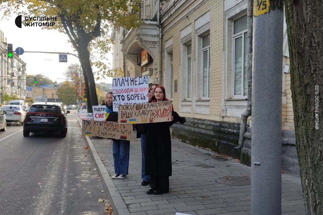 У Житомирі відбулася акція протесту проти нераціонального розподілу бюджетних грошей в умовах війни. Два десятки людей зібралися з плакатами біля Житомирської міськради з вимогою переадресувати гроші на допомогу ЗСУ.