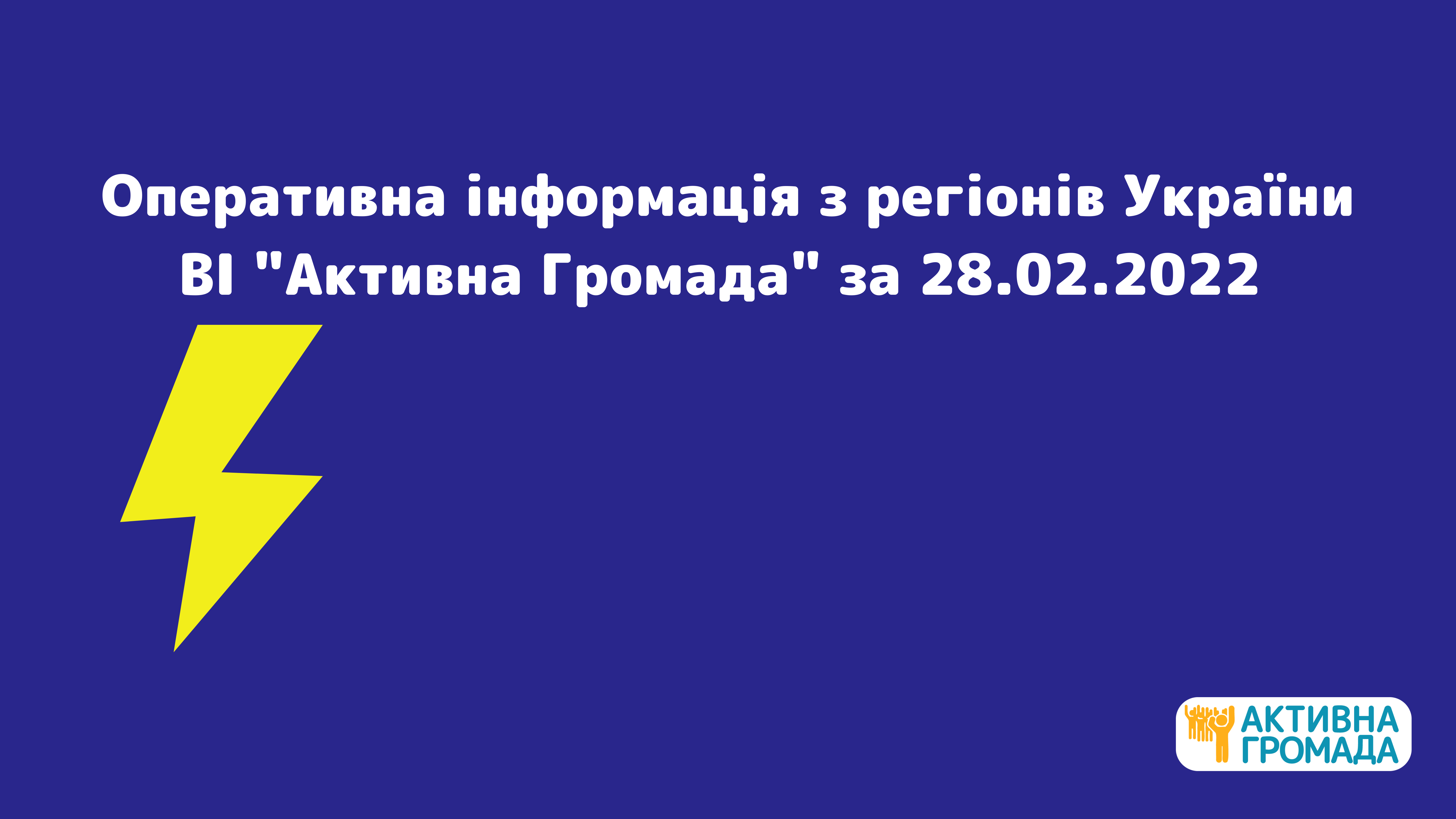 Оперативна інформація з регіонів України, в яких представлена мережа ВІ "Активна Громада" станом на 28.02.2022 року
