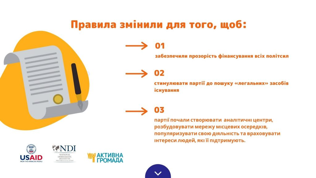 У 2016 розпочалася реформа політичного фінансування. Тоді депутати ухвалили закон, який повністю змінив правила наповнення бюджетів політичних партій.
