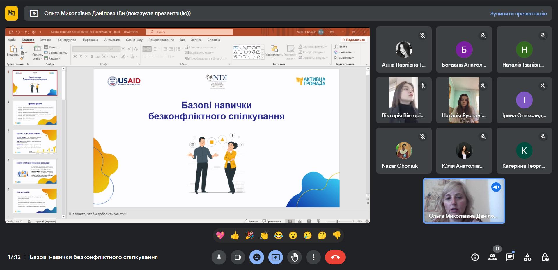 У форматі онлайн тренінг: "Базові навички безконфліктного спілкування" провів також осередок ВІ "Активна Громада" у місті Хмельницький.