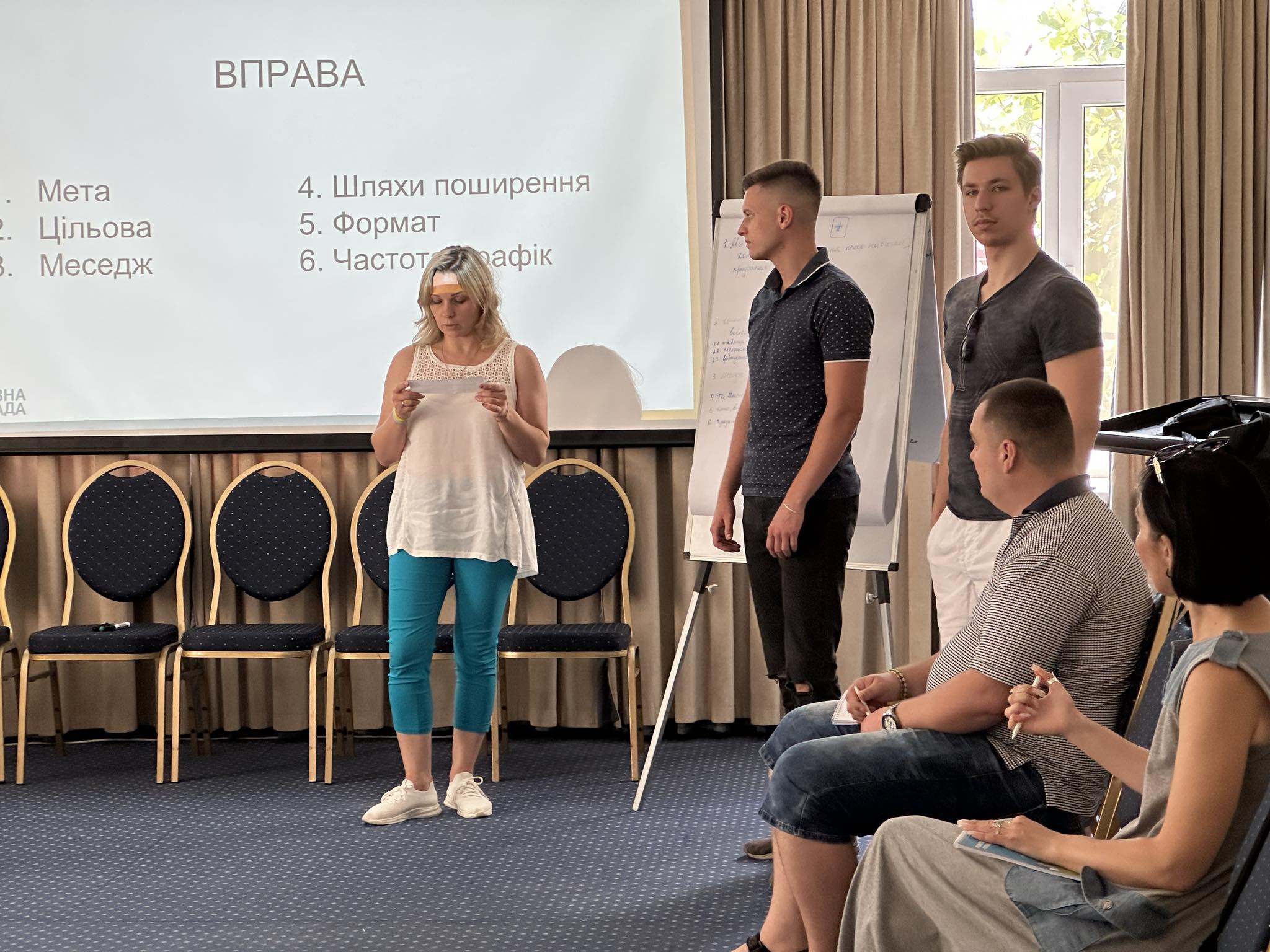 Олеся Лапікова, комунікаційна координаторка ВІ «Активна Громада», керівниця громадських проєктів, волонтерка, розповіла учасникам, як ефективно запускати та супроводжувати інформаційні кампанії.