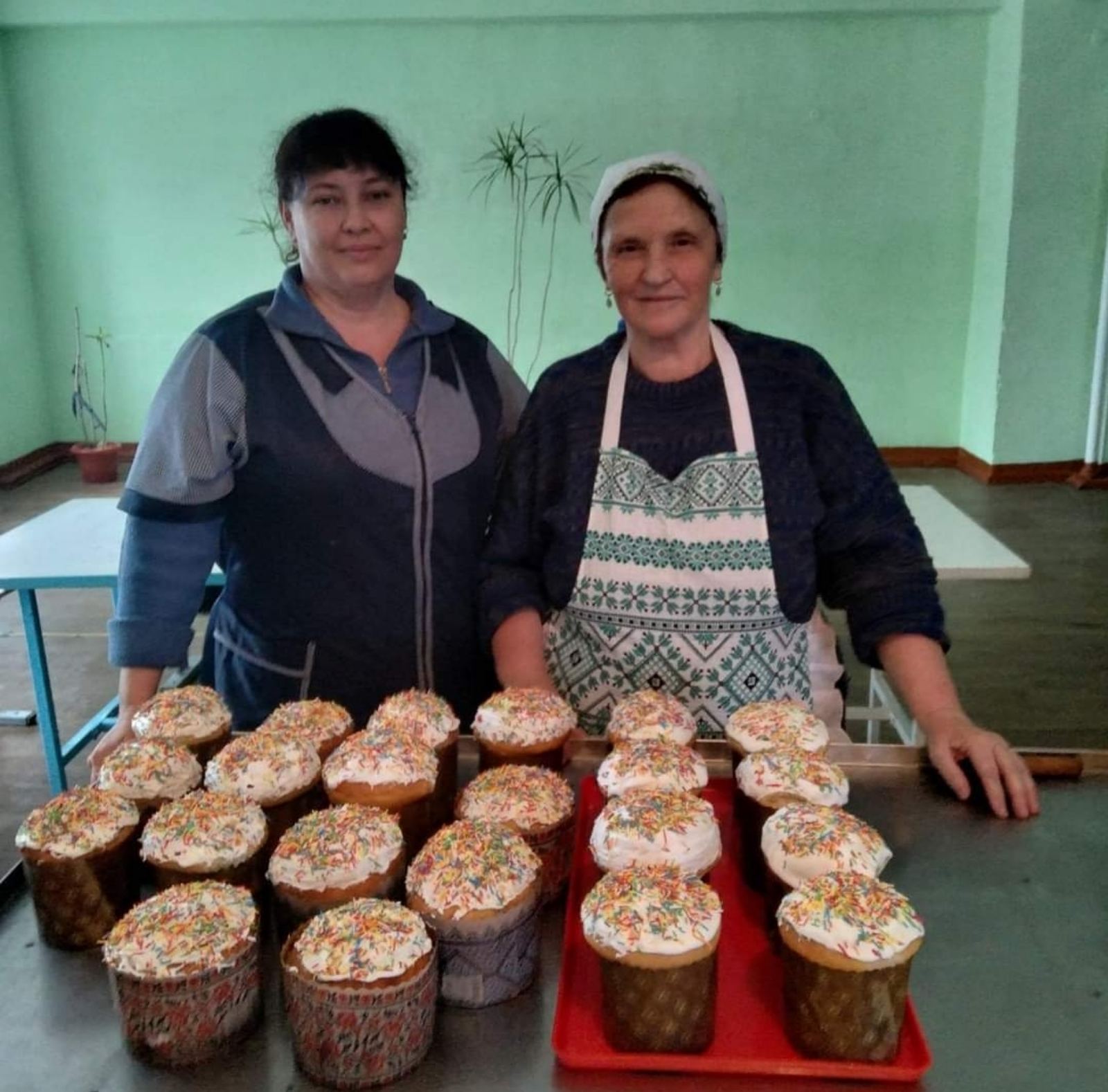 Майстриня по випічці пиріжків, Любов Ульяшина, яка ще й передає громаді, щотижня, від благочинних організацій сотні хлібин для нужденних. А Світлана Лисяк — неперевершена кондитер. З продуктами допомагають Олександр Курдін, Віра Тихоненко, Світлана Калалб.