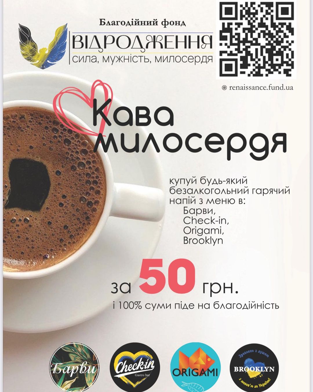 Ви купуєте будь-який безалкогольний гарячий напій з меню @brooklyn.rivne, @barvu_kostopil, @check_in_gbar чи @origami_cafe17 за 50 грн і 100% суми піде на благодійність.