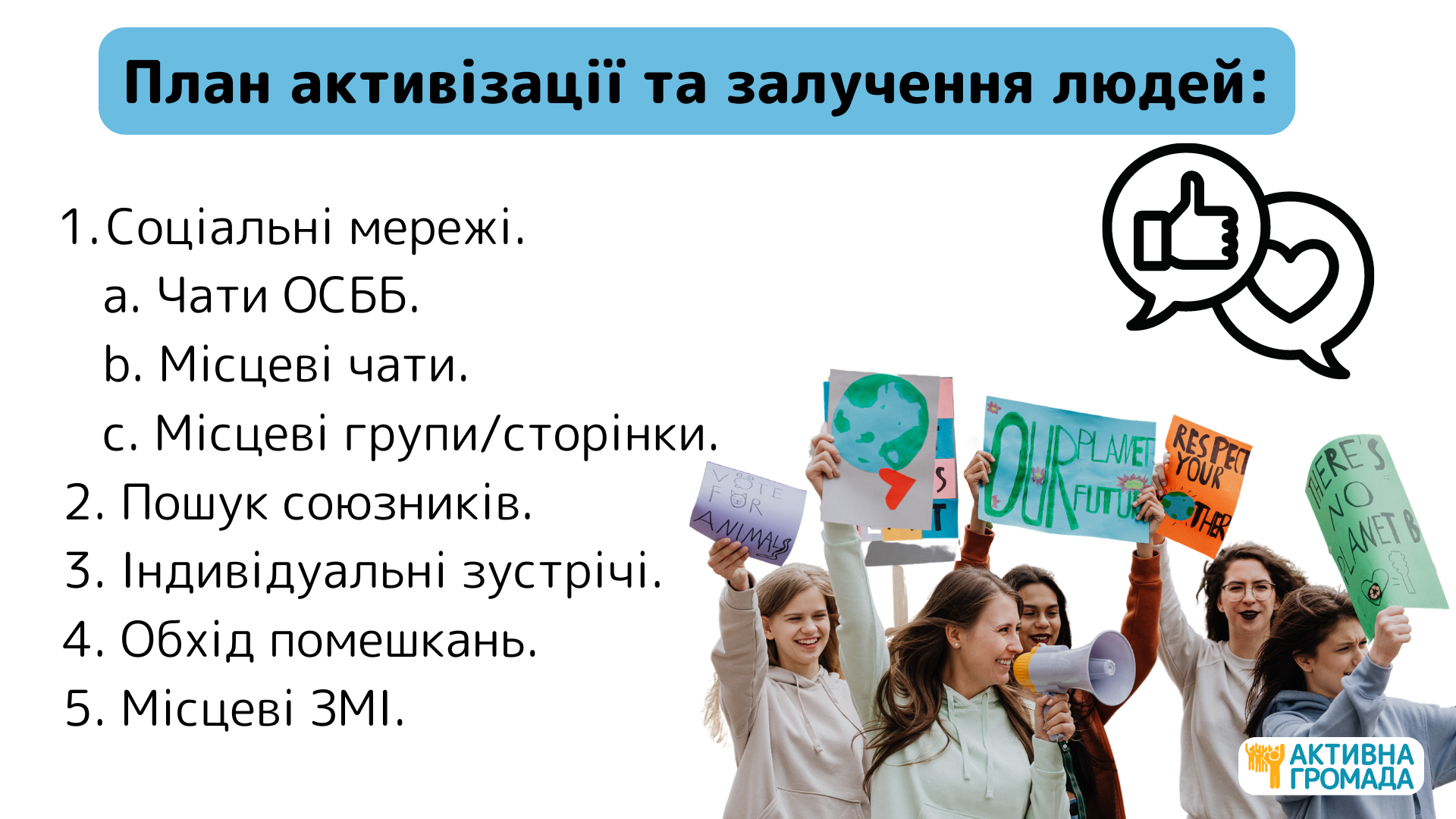 Тож, Віталій запропонував такий план активізації та залучення людей: