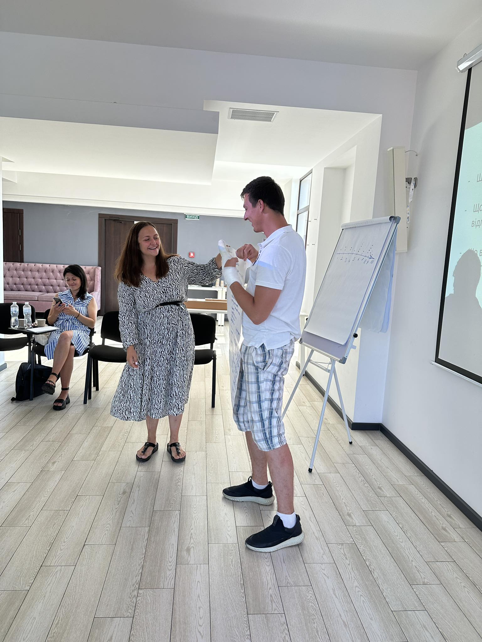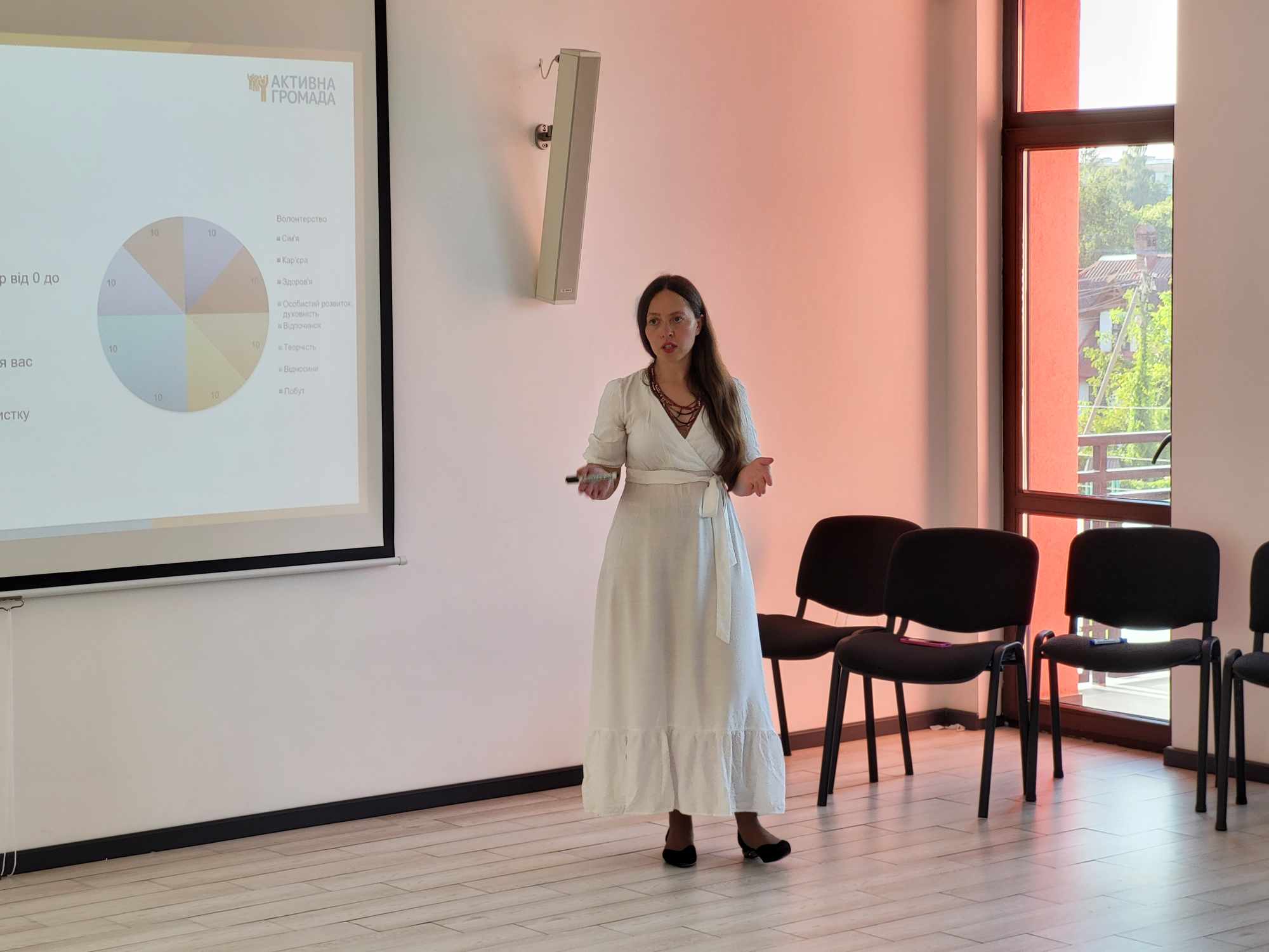 Ведучою тренінгів по психології людей в кризовий період, неконфліктної комунікації та ефективного управління часом виступила Олександра Гліжинська, виконавча директорка Інституту “Республіка”, засновниця ВІ “Активна Громада”, сертифікований коуч, НЛП-майстер.