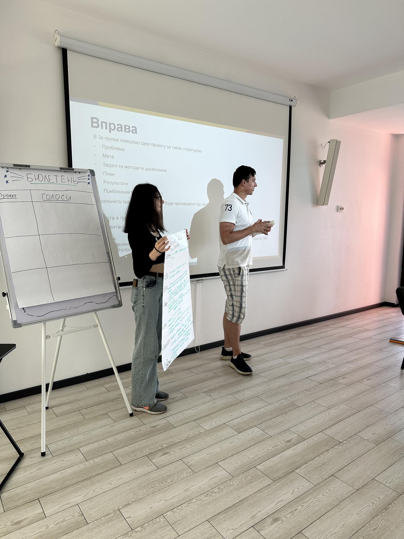Також надзвичайно цінний досвід для учасників - робота в команді. Вони разом працювали над поставленими задачами, креативили, шукали рішення, дискутували, а потім - представляли іншим командам результати своїх напрацювань.