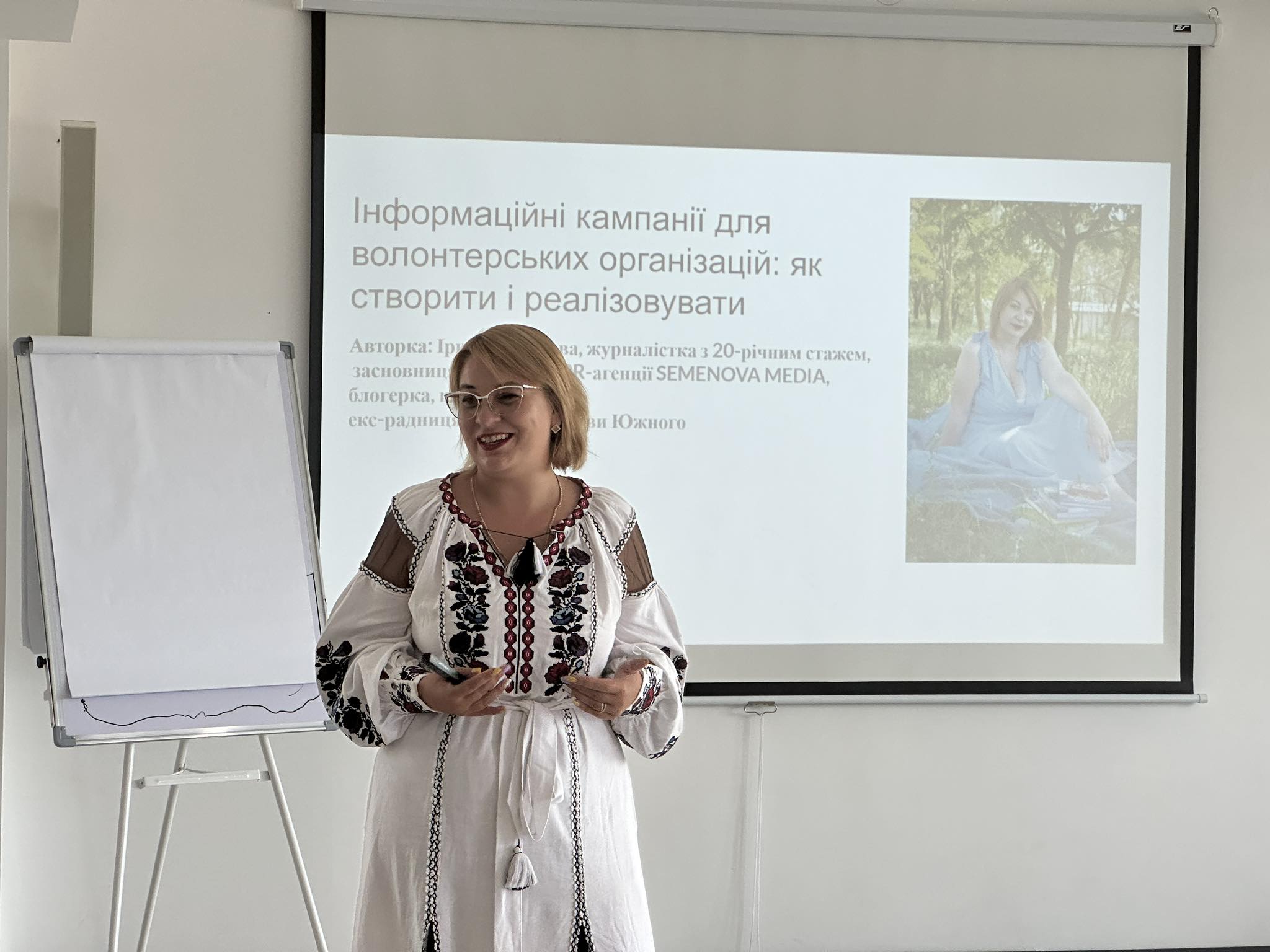 Ведучою тренінгу з інформаційних кампаній виступила Ірина Семенова, журналістка, засновниця PR-агенції Semenova Media.