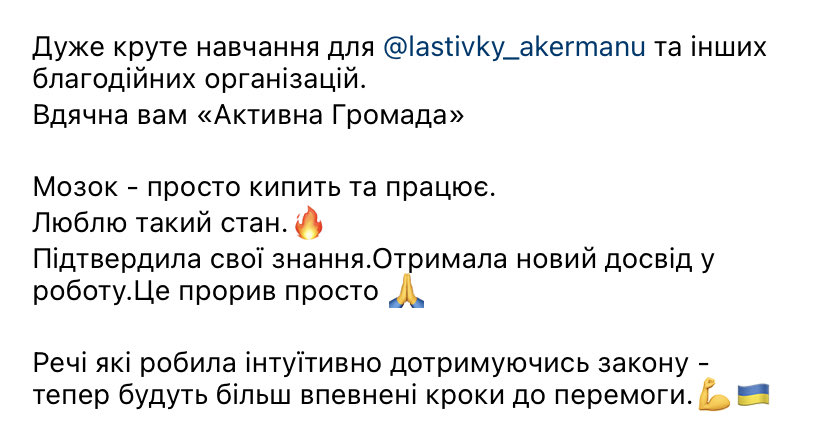 Також дякують організаторам за навчання та емоції.