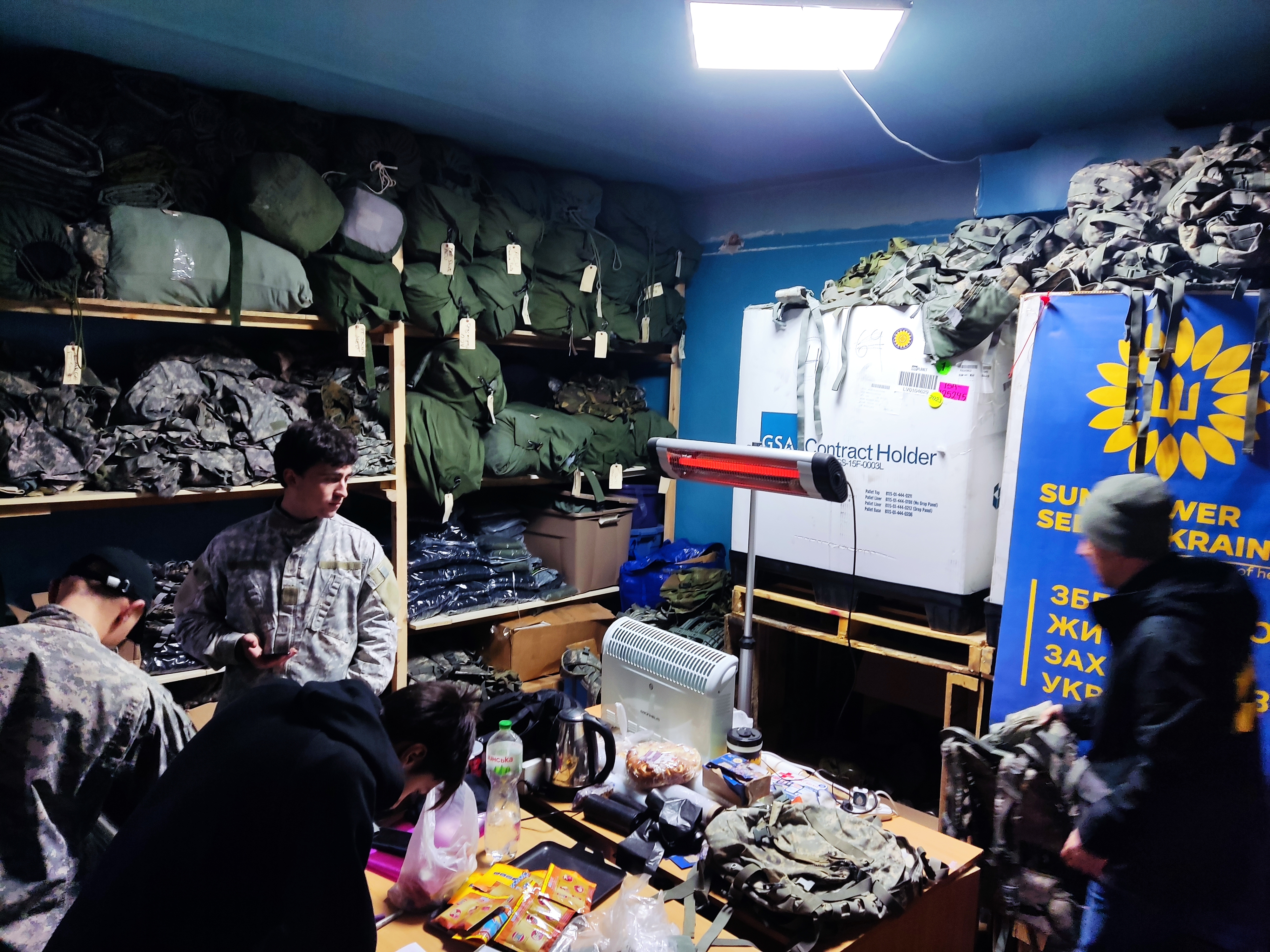 "Хоча місця не багато і приміщення ще зовсім не дороблене і потребує ремонту сюди вже стоїть велика черга . Жінки військових прийшли отримати те ,що зігріє чоловіків ,допоможе вижити ,виконати поставлені завдання . - коментує координаторка АГ Ольга Бережна, яка також прийшла ,щоб отримати допомогу для свого чоловіка, який захищає нашу Україну. - Волонтери підходять індивідуально до кожного запиту .Приємно вразило ,що допомагають і волонтерять не тільки дорослі, а і підлітки , які ще навчаються в школі."